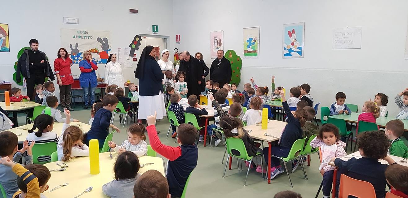 Il Vescovo visita l’asilo di Narzole portando gli auguri a tutti i bimbi