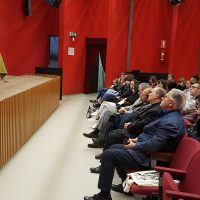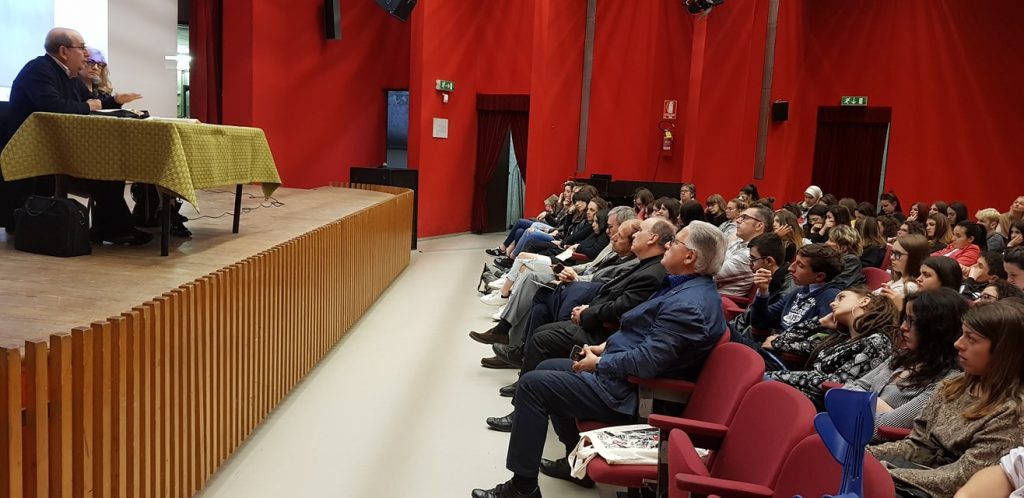 Il vescovo ha salutato i partecipanti alla Settimana della Comunicazione organizzata dal Centro culturale San Paolo di Alba. Ernesto Olivero con 500 ragazzi delle scuole superiori di Alba in Sala Ordet.